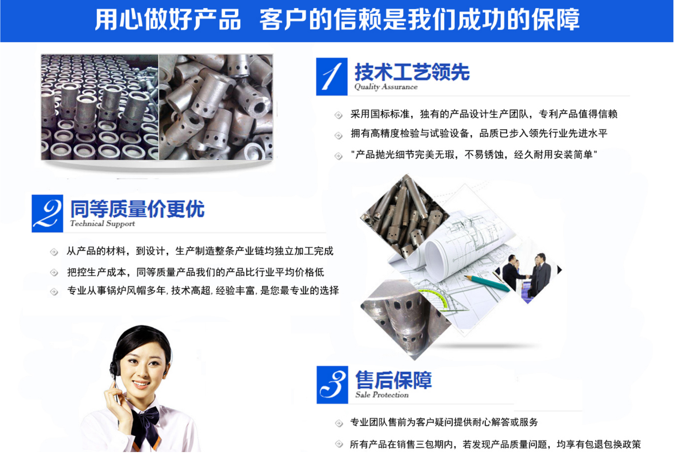 聊城營輝金屬材料有限公司主營鍋爐風帽,流化床風帽,鍋爐鑄鋼風帽,鍋爐風帽廠家等,我廠多年來憑借不斷的行業(yè)經(jīng)驗提升自身的技術(shù)實力,在行業(yè)中領(lǐng)域達到了一個前所未有的高度,與我廠合作的大中小企業(yè)不勝枚舉,我們擁有堅實的技術(shù)實力支持,可靠的團隊,使用我廠生產(chǎn)的為您的產(chǎn)品生產(chǎn)安全來保駕護航! 一個合格的產(chǎn)品可以為您帶來質(zhì)量上的提升,并且保證生產(chǎn)安全更是當中的重中之重。我們更希望客戶能夠選擇我們的產(chǎn)品,讓我們與您共同奮斗。 我們致力于做行業(yè)的精英,為您解決所有您需要解決的問題!我們會認真對待每一個產(chǎn)品,保證您可以享受到完美的服務待遇!為您解決麻煩是我們的宗旨! 歡迎各位新老朋友到廠參觀,蒞臨指導,歡迎隨時咨詢本站客服,我們將竭誠為您服務!...